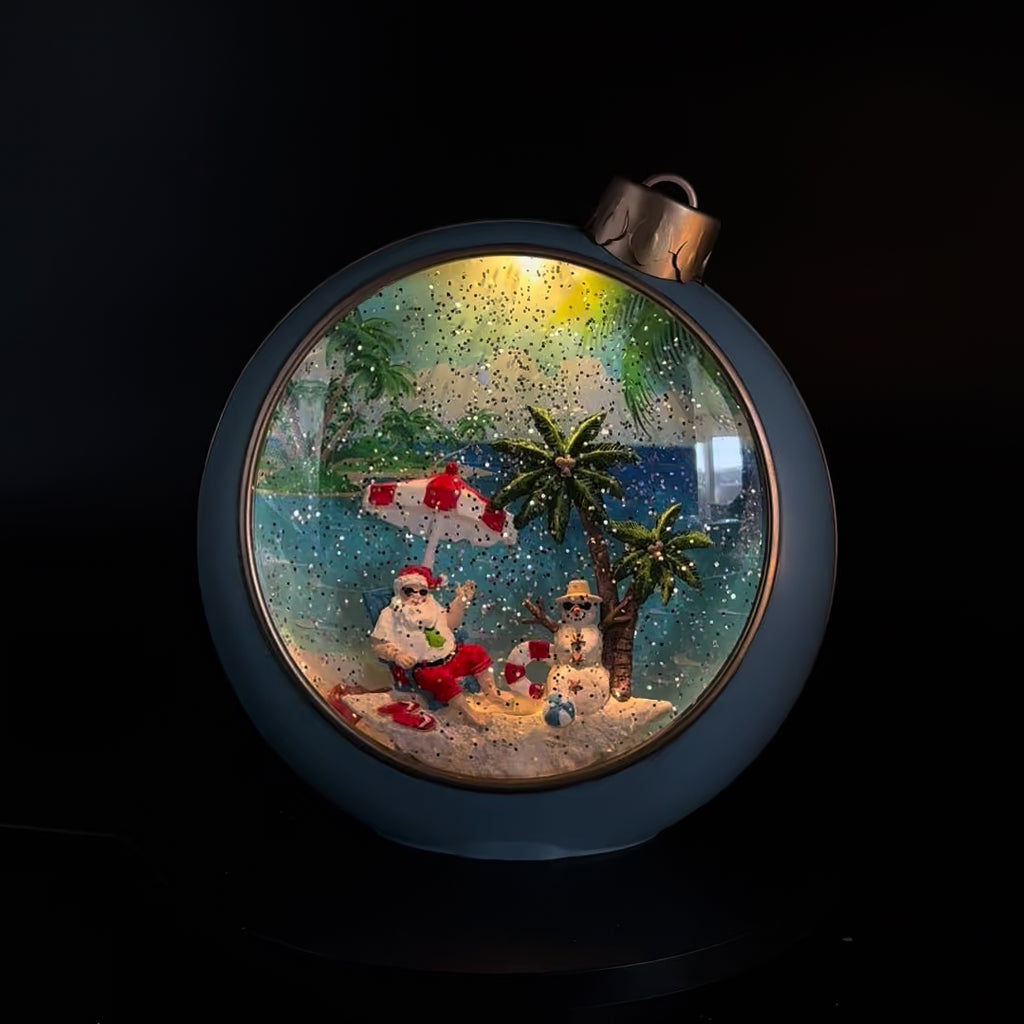 Blue Snowing Ornament w/ Santa on the Beach